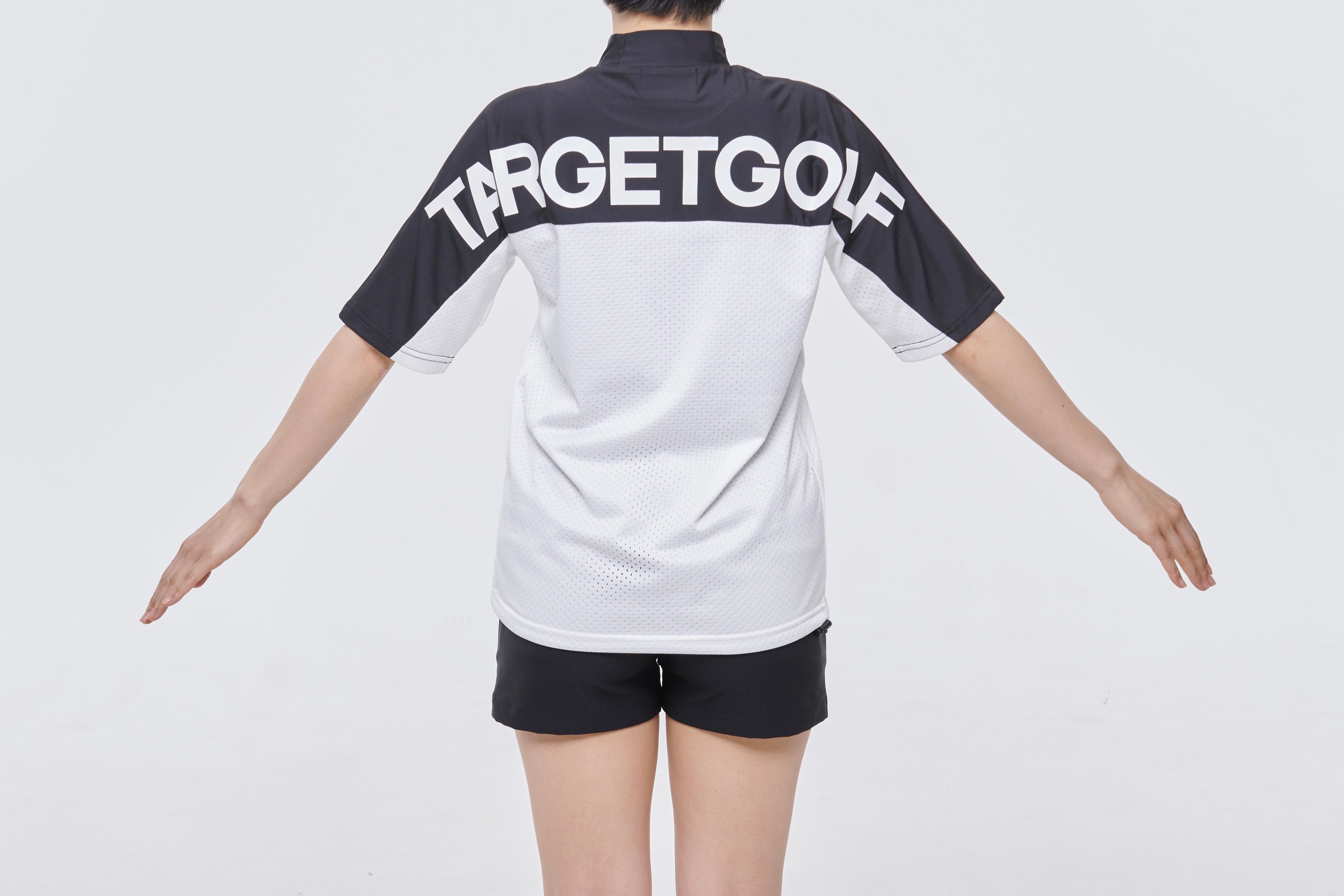 ・メッシュをダブルにすることで透け感が少ない反面 通気性は良く、速乾性があるためベタつき等も感じにくくラウンド中の涼しさに配慮したモックネックTEE