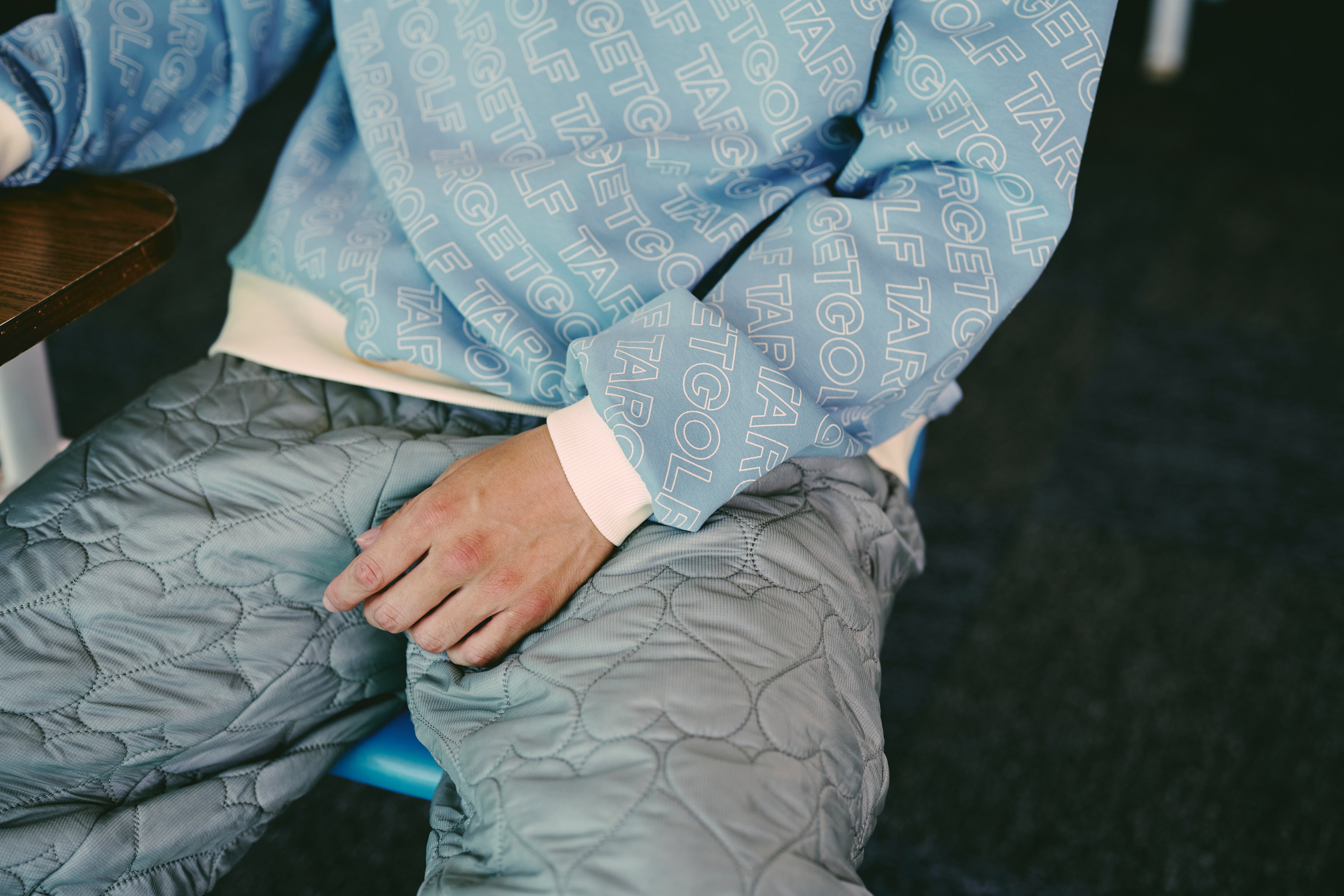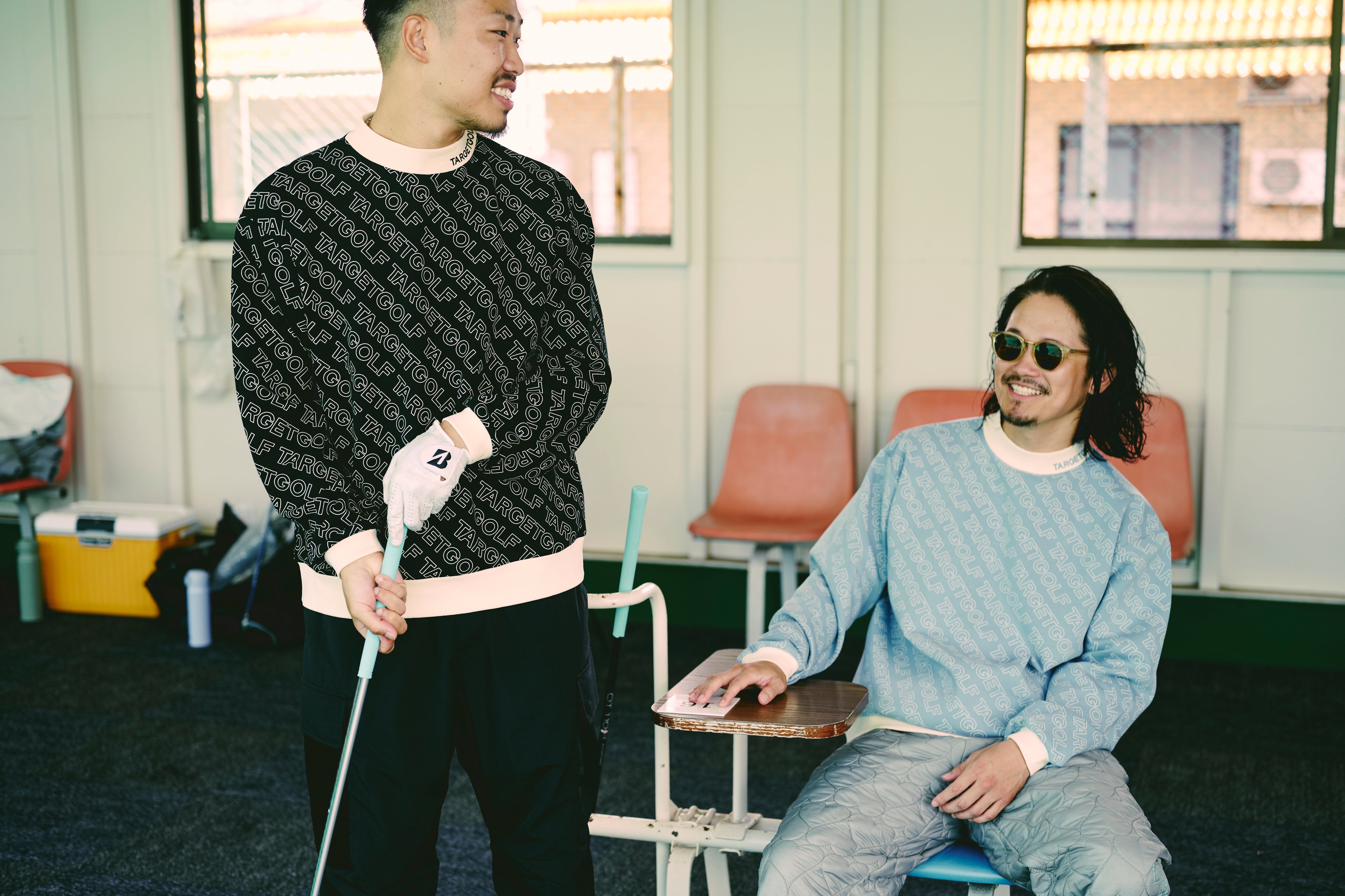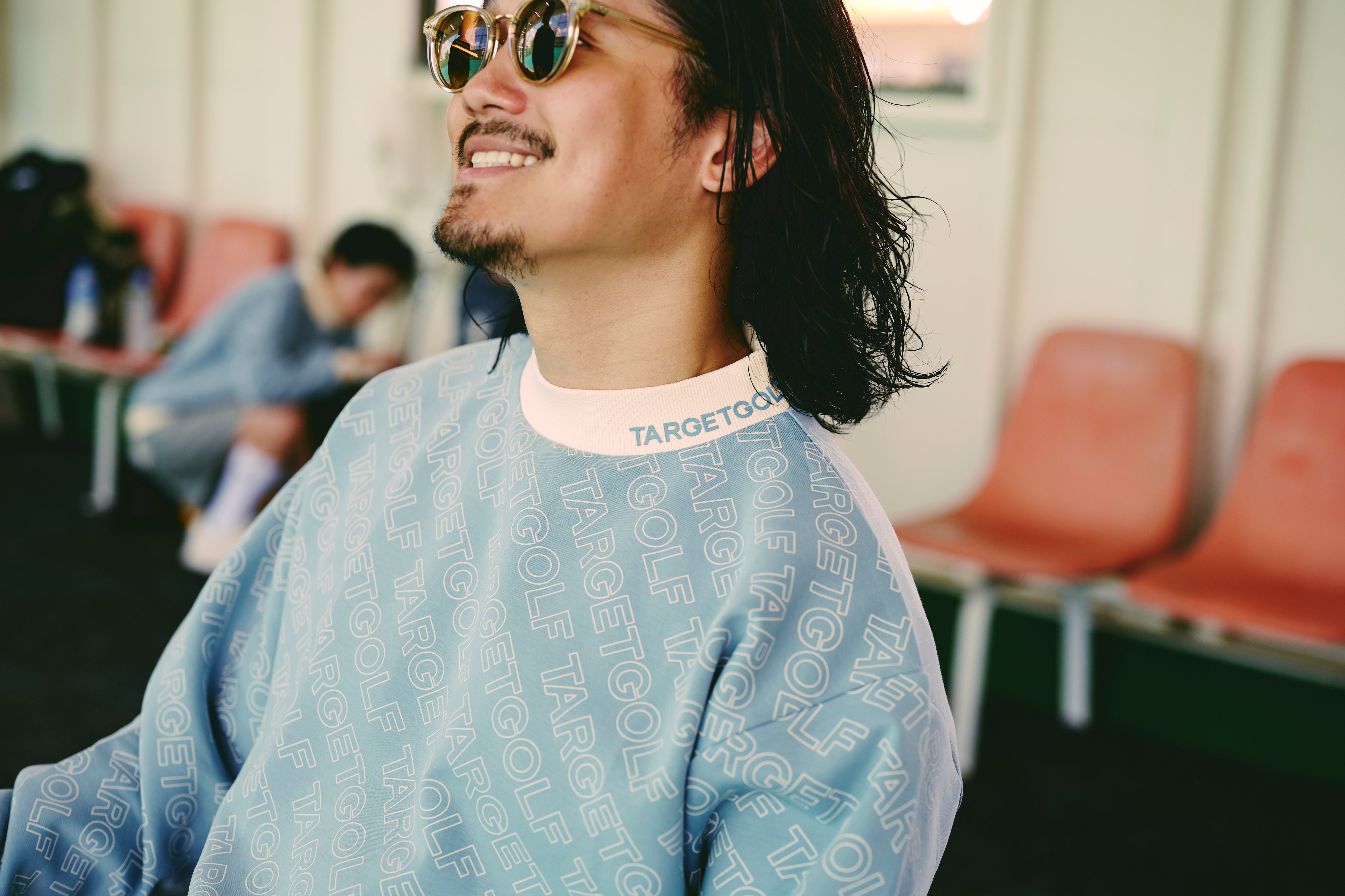 ・リブ素材のモックネックにはTARGETGOLFをプリント